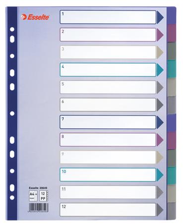 Regiszter, műanyag, A4 Maxi, 12 részes, ESSELTE, színes