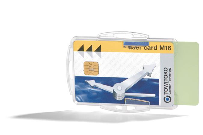 Nyitott kivitelű azonosítókártya-tartó.