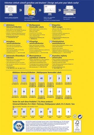 Etikett, univerzális, eltávolítható, 17,8x10 mm, AVERY ZWECKFORM, 8100 etikett/csomag